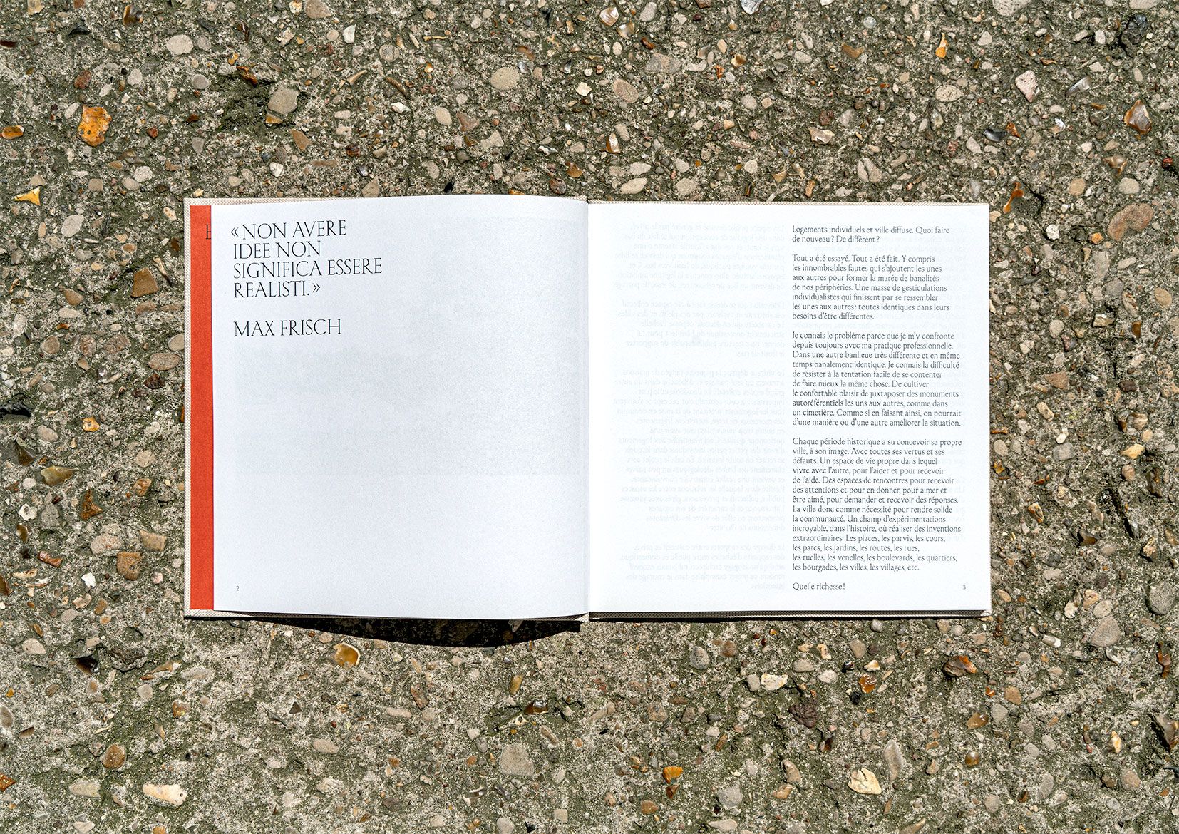 FR — «Logements individuels et ville diffuse. Quoi faire de nouveau? De différent? Tout a été essayé. Tout a été fait. Y compris les innombrables fautes qui s’ajoutent les unes aux autres pour former la marée de banalités de nos périphéries. Une masse de gesticulations individualistes qui finissent par se ressembler les unes aux autres: toutes identiques dans leurs besoins d’être différentes.» (extrait de la préface de Giacomo Guidotti)